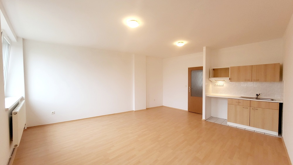 Dispozice: pokoj s kuchyňským koutem o ploše 26,30 m², prostorná předsíň 4,42 m², koupelna se sprchovým koutem společná s WC 4,10 m².