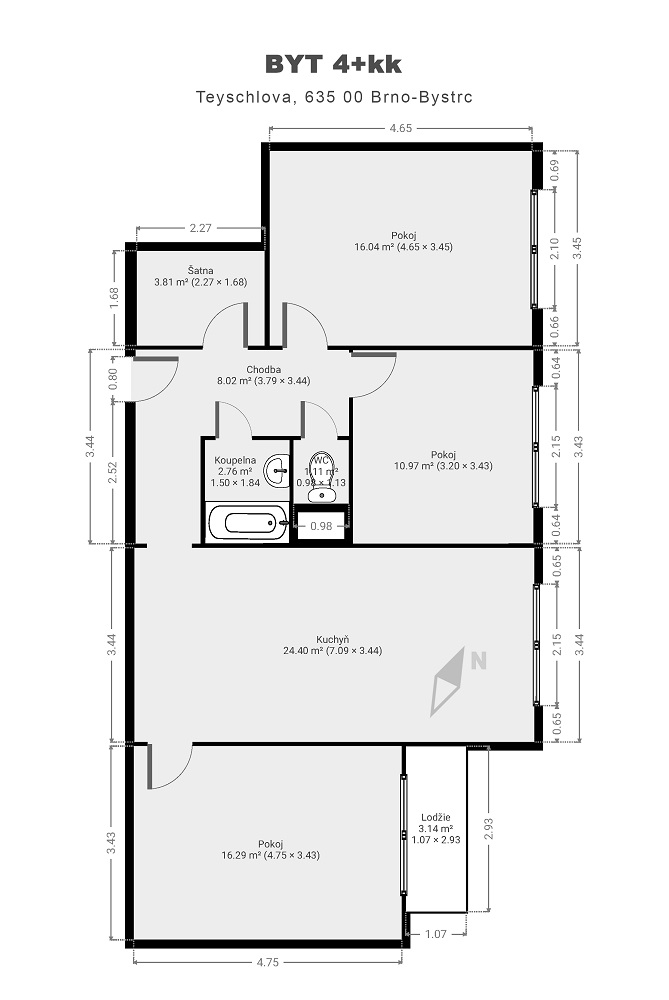 Prodej zrekonstruovaného bytu OV 4+kk Brno-Bystrc, ul. Teyschlova